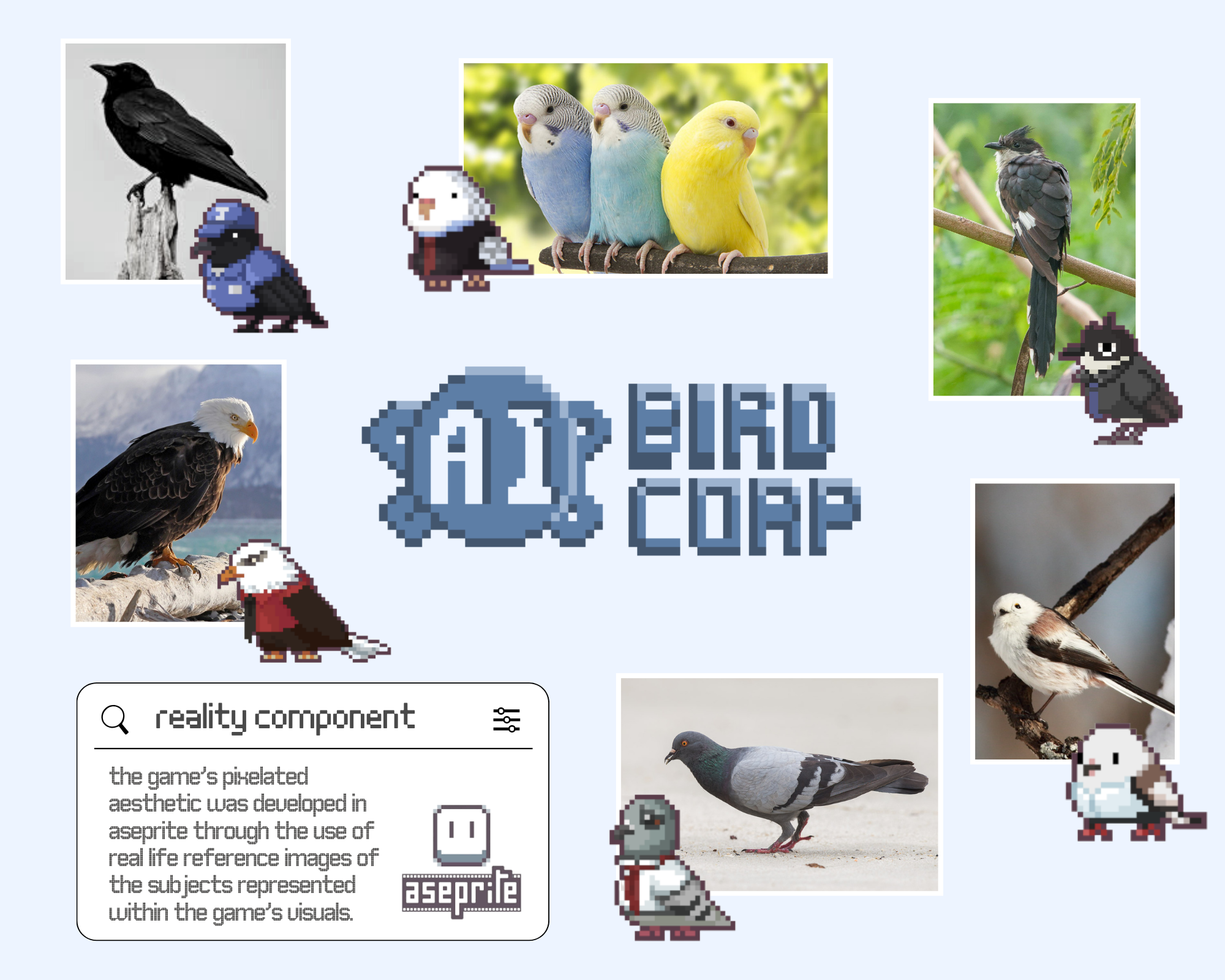 Bird Corp sits within the area of serious game design, which is games built with an educational or social purpose beyond entertainment. My research drew on frameworks in game design theory, player agency, and practice-based creative research to shape both the structure of the game and the process of making it. The game was developed iteratively over the course of the module, with each stage of building, testing, and reflecting feeding back into the next.