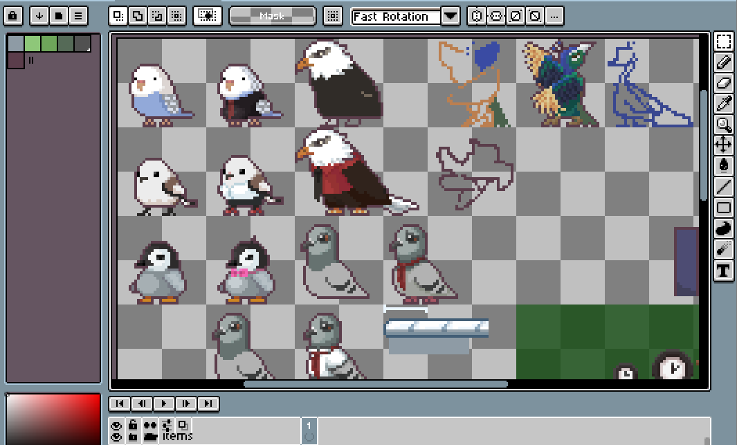 After finalising the character sprites, I shifted my focus to the environment to build the world of Bird Corp. Using Aseprite, I created a consistent tilemap system for the walls and floors to establish the office’s structure. My goal was to create distinct zones that feel like a functioning workplace, starting with the Boss’s Office. I designed this space to feel authoritative yet quirky, featuring a large executive desk for the Eagle character and a panoramic window view. I also added small details like a parody “Mona Lisa” bird painting to add personality to the setting.